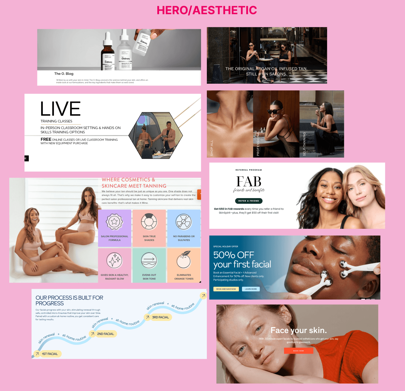 Spray tanning sits in a strange intersection. There is the world of drugstore and influencer self tan brands that are fun and glamorous. There is the world of clinical dermatology that looks sterile. There is the world of generic training sites that feel like course mills. Aviva is none of those. The challenge was to make them feel specific and like the inevitable choice in that landscape.