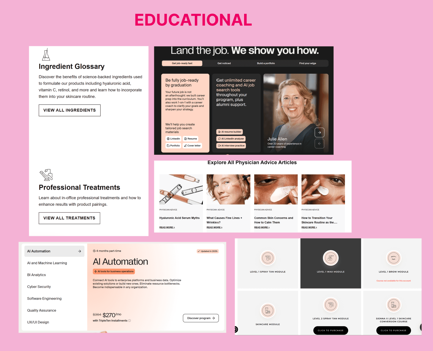 It taught me how to design for three layers of trust at once. Trust in the product on the skin, trust in the teacher at the front of the class, and trust that this path can materially change someone's income. That is more complex than a simple "sign up for a subscription" flow. It requires layering proof, empathy, and clarity in a way that feels natural.