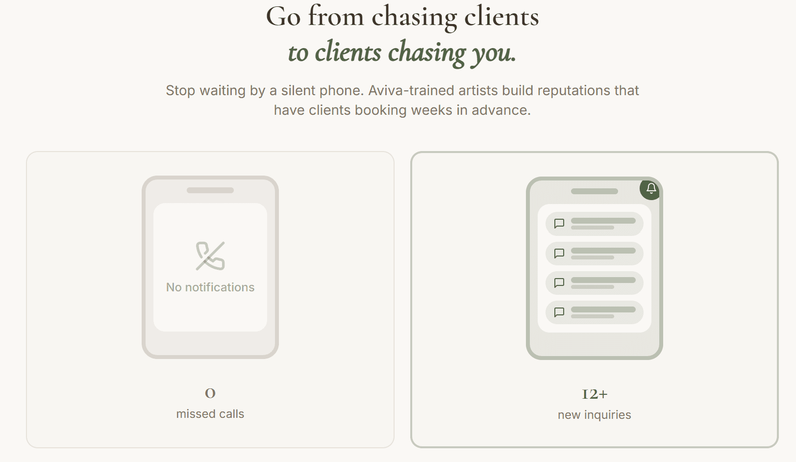 Aviva serves aspiring spray tan artists, existing salon owners, and mobile entrepreneurs who care about safety, results, and business growth. The pages did not speak directly to that working professional who might be trying to decide if this is a real, serious path or another side hustle trend.