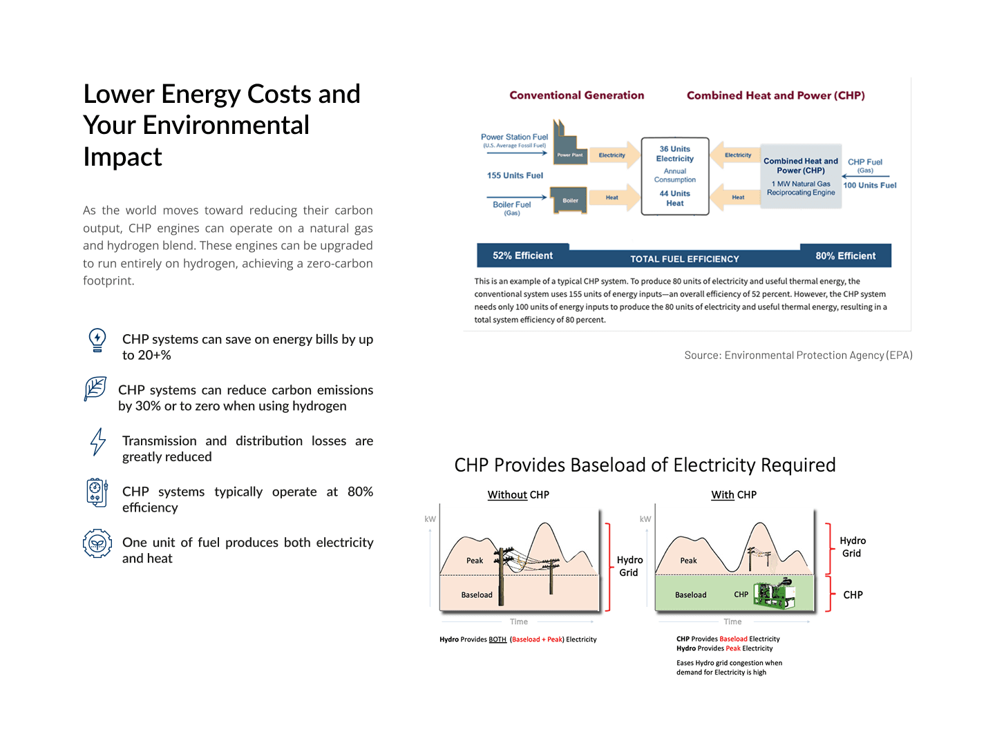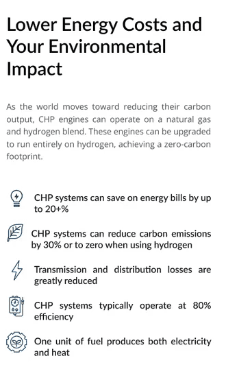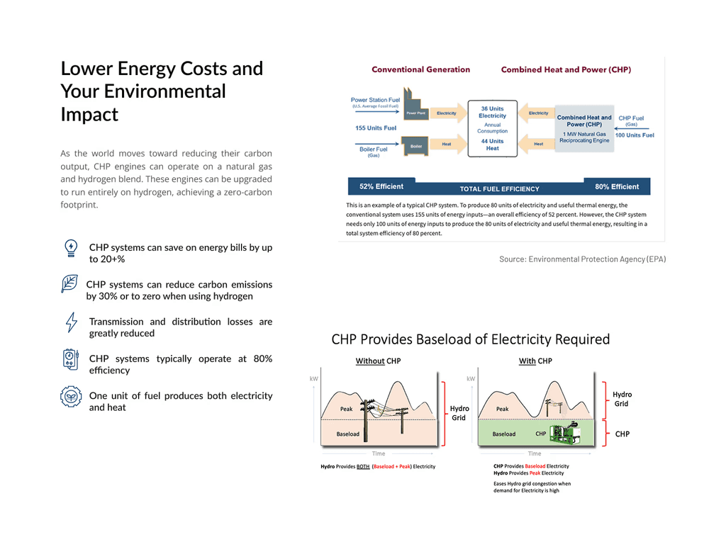 For the CHP Systems page, I translated technical jargon into accessible language. By incorporating infographics and interactive elements, I made it easy for visitors to understand the benefits without needing an engineering degree. The new design breaks apart the information into a digestible format through bullet points, highlighted and prominent headers and statements, and a much more streamlined approach to the amount of text.