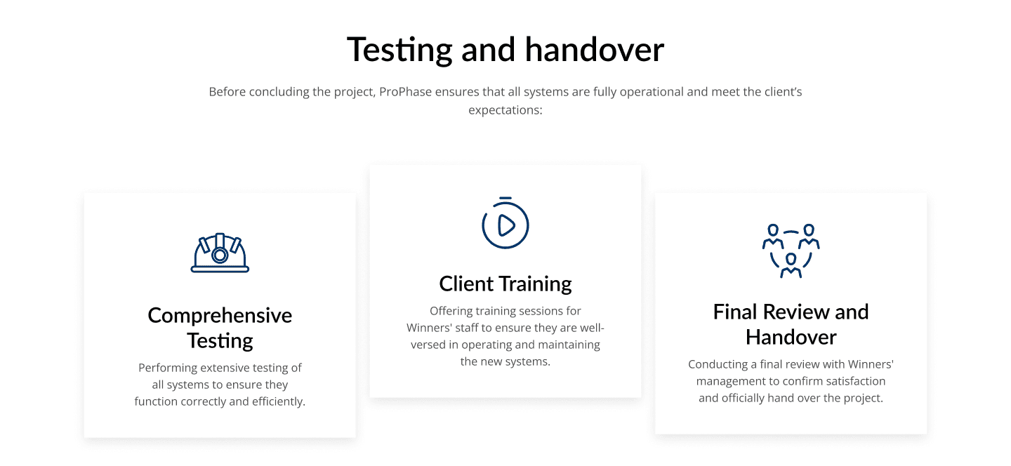 I created a dedicated case studies section, featuring detailed profiles like the Target project. By highlighting real-world challenges and solutions, I demonstrated ProPhase's expertise and reliability to potential clients. Through these case studies, users will be able to understand the process of a ProPhase project from start to finish, answering questions that they may not know they would have due to the process, conflict, and resolution all being laid out in front of them in a transparent manner on each case study