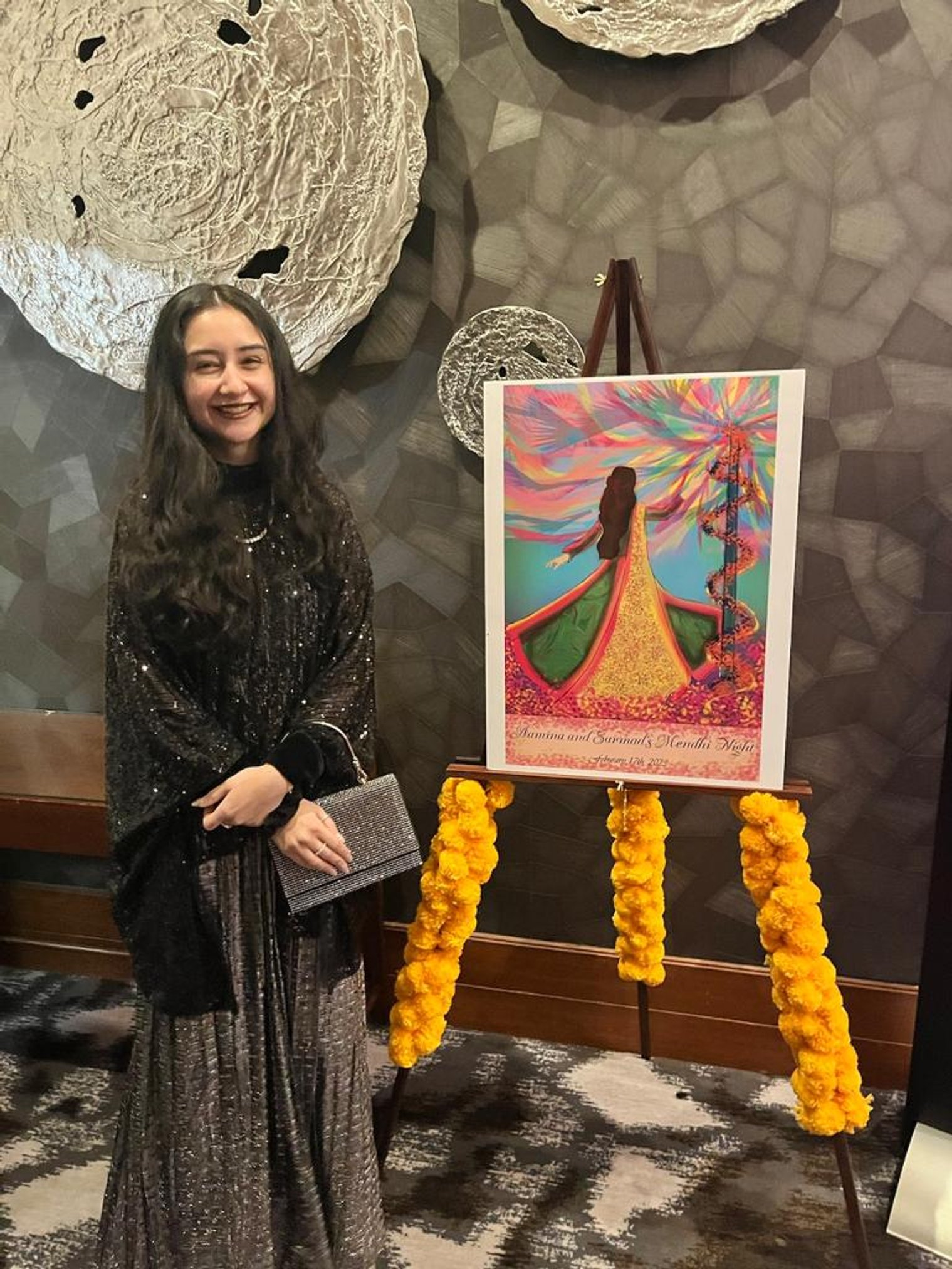 The design for the Mendhi poster, is the more colourful of the two pieces, due to the nature of a mendhi ceremony being full of bright and vibrant colours, primarily oranges, yellows, greens, and pinks.